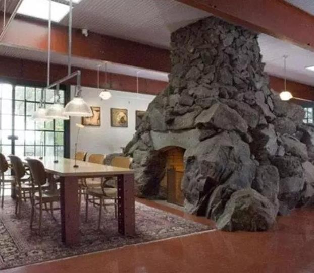 比如这个在餐厅里堆了一大堆石头当壁炉的……